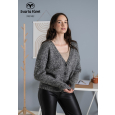 Een heerlijke vest die gebreid wordt vanaf beneden naar boven met een gevormd afgezakte schouder. De vest heeft een v-hals met een brede knoopbies. De mouwen zijn net iets langer en worden vanaf boven naar beneden gebreid met minderingen tot de boord. Een mooi detail is de gebroken boord die aan alle boorden van de vest terugkomt.