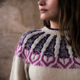 Traditioneel scandinavisch gebreide trui met een vleugje kleur op de patroon gebreide pas. Het model wordt van beneden naar boven gebreid.