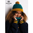 De muts in twee kleuren gebreid van beneden naar boven. Een maat , begin en het einde is met boordsteek , in het midden wordt de gerstekorrel gebreid.