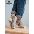 Geribbelde, smal gestreepte sokken die vanaf de tenen omhoog worden gebreid met de magic loop.