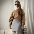 Een korte, structuur gebreide kokerrok met boordsteken aan de zijkanten, van onder naar boven gebreid met minderingen aan de zijkanten. De taille wordt met verkorte toeren gevormd, voordat de rok wordt afgewerkt met een boord dat dubbel wordt gevouwen en aan de binnenkant wordt vastgezet. Tenslotte wordt er een elastiek in de tailleband geregen. Met zijn stijlvolle structuurpatroon en de klassieke snit zal de rok een tijdloze toevoeging aan jouw garderobe!
