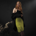 Een korte, strakke rok, gebreid van boven naar beneden. Een ongelooflijk snel gebreid project met twee draden Ulrika en een draad Cecilia. Passend bij de trui en het hemdje met dezelfde naam.